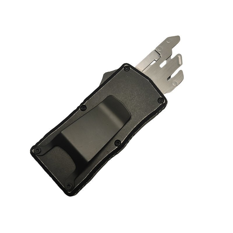 Description: This small Out The Front utility knife fits in a pocket, removes the replacement blade, and comes in a beautiful gift box. It has an excellent safety device to keep the blade from dropping in any situation, and the handle is made of carbon fiber material, making it smoother in the hand.