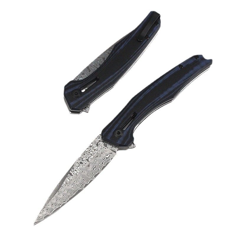Zero error 0707 Damascus steel knife new black and blue outdoor folding knife portable folding knife